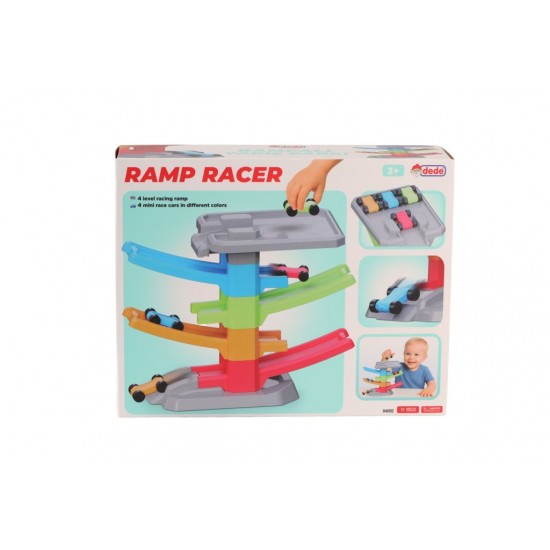 -6 seviyeli yarış rampası -Farklı renklerde 4 mini yarış arabası -Kutu ölçüsü: 24x30,5x8 cm