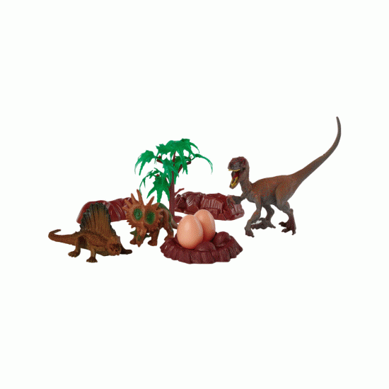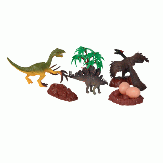 İçindekiler: 3 dinozor 9-12 cm, aksesuarlar, 9 adet, yumurta 17cm