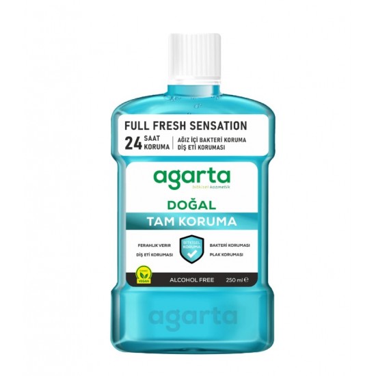 Agarta ağız bakım suyu diş ve diş eti sağlığınız için geliştirilmiş günlük kullanıma uygun bakım ürünüdür.Alkol ve florür içermeyen doğal formülü ile güvenli ve sağlıklı ağız bakımı sunar.Ağız bakım suyu dil, diş eti ve fırçanın ulaşamadığı yerlere kolaylıkla ulaşarak ağızda bakteri oluşumunu engeller.Agarta tam koruma sağlayan ağız çalkalama suyu diş çürümesine ve diş eti hastalıklarına karşı ağızda oluşan bakterileri gidermek için geliştirilmiştir.Diş fırçalamaya ek olarak kullanıldığında dişlerin beyazlamasına destek olur.Diş minesini güçlendirir.Uzun süren ferahlık sayesinde ağızda oluşan kötü kokuları önler.Agarta ağız çalkalama suyu sadece nefesinizi tazelemekle kalmaz, plak ve tartar oluşumunu engellemeye yardımcı olur.Doğal gargara ayrıcalığı sunan Agarta ağız bakım suyu içeriğinde doğal esansiyel yağlar bulundurur.Adaçayı yağı, nane yağı, meyan kökü, Kamelya sinensis yaprağı özü, okaliptüs yağı, saf limon kabuğu yağı gibi doğal esansiyel yağlar içerir.Bu yağlar doğal antiseptik, antibiyotik özelliklere sahiptir. Ağız içinde yara ve enfeksiyonlara karşı koruyucudur.Sağlıklı bir ağız ve diş eti için gerekli olan temizlik ve hijyen, uzun süren ferahlık ve doğal koruma sağlar. Ağız içi hijyeni için doğal gargara arıyorsanız Agarta tam koruma ağız bakım suyunu tercih edebilirsiniz