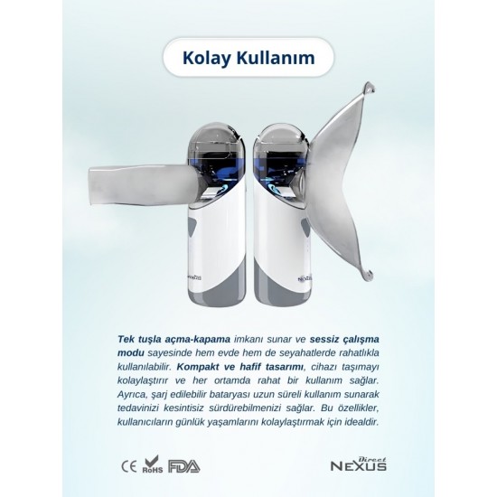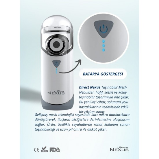 Direct Nexus Taşınabilir Mesh Hava Makinesi Nebulizatör Özellikleri