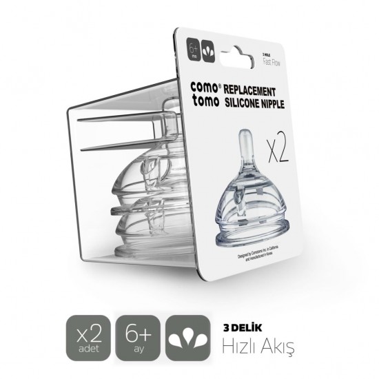 Comotomo Silikon 2'Li Biberon Emziği Hızlı Akış 6+ Ay