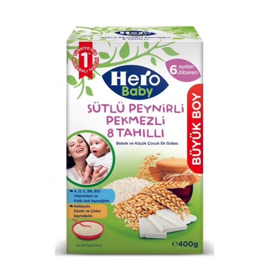 Hero Baby Sütlü 8 Tahıllı Peynirli Pekmezli Ekonomik Paket Kaşık Mama 400 Gr