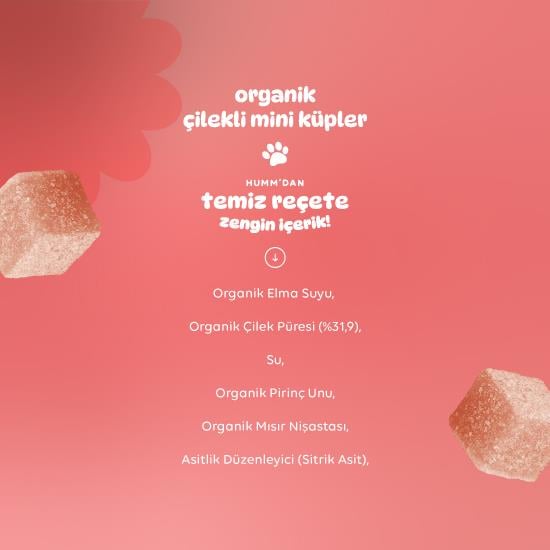 Organik Çilekli Glutensiz Vegan Mini Küpler 30 Gr