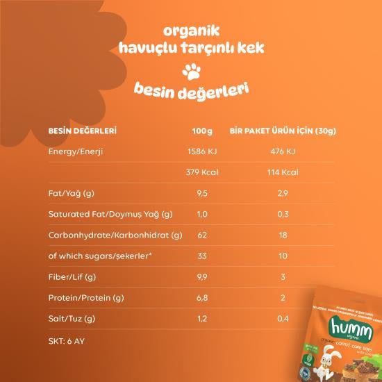 Humm Organik Havuçlu Tarçınlı Vegan Kek 30 Gr Özellikleri;
