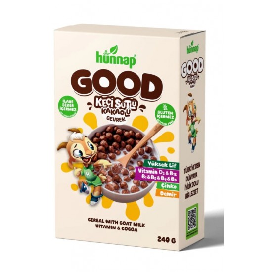 Hünnap Keçi Sütlü Kakao ve Vitamıin Tahıllı Glutensiz Gevrek 240 Gr