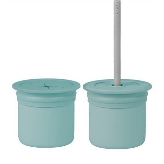 Pipetli Silikon Bardak Seti Aqua Green / Powder Grey