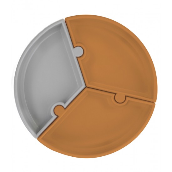 Puzzle Vakum Tabanlı Silikon Tabak Woody Brown / Powder Grey