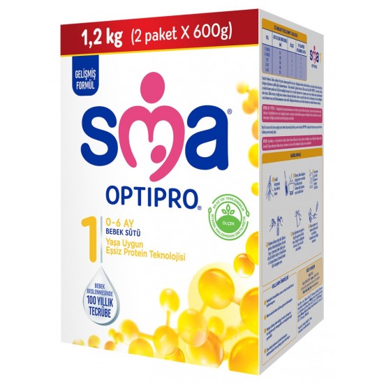 ÖNEMLİ UYARI: Bebekler için en iyisi anne sütüdür ve emzirme devam edebildiği kadar etmelidir. SMA® OPTIPRO® 1 yalnızca doğumdan itibaren anne sütüyle beslenemeyen 0-6 aylık sağlıklı bebeklerin beslenmesi için bağımsız sağlık hizmeti çalışanlarının tavsiyesi ile kullanılmalıdır.