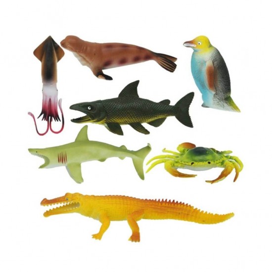 1000713 Okyanus Hayvanları Poşetli 7'li Hayvan Oyun Seti -Sunman