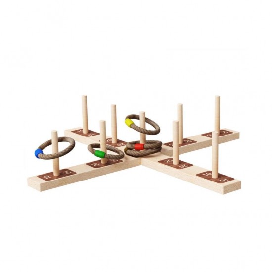 Belirli bir mesafe belirlenir. Mesafe belirlendikten sonra 5 adet halkayı tek tek oyun tablasına atın. Oyun tablası üzerinde 10-20-50 rakamları bulunan çubuktan halkayı geçirirseniz o kadar puan kazanırsınız. çocukların el-göz koordinasyonunu geliştirir.