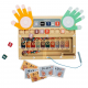 Kutu içerisinde; ahşap pano, 11 adet sayı bloğu, 10 adet işlem kartı, manyetik kalem, 2 adet el ve 55 adet manyetik boncuk bulunmaktadır.
