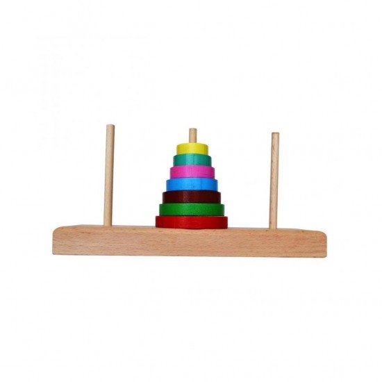 Hanoi kulelerinin amacı farklı boyutlardaki ahşap disklerden oluşan konik kuleyi, üç direğin bulunduğu oyun alanında bir diğer direğe en az hamle ile taşımaktır.