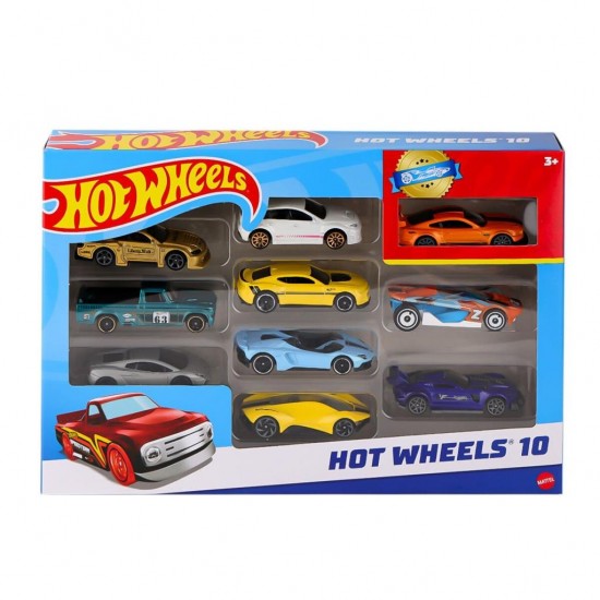 Hot  Wheels  araçları  1968'deki  çıkışlarından  beri  her  yaştan  koleksiyoncunun,  araba  tutkununun  ve  yarışseverin  favorisi  olmayı  sürdürüyor.  10'lu  Araba  Seti  geniş  bir  araç  yelpazesinden  oluşuyor.  1:64  ölçeğindeki  her  araç,  gerçekçi  ayrıntılara  ve  özgün  süslemelere  sahip.  Çocuklar  ve  her  yaştan  koleksiyoncular  için  muhteşem  bir  hediye.
