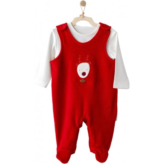 Andywawa AC25339 Happy Newyear Kadife Bebek Tulum Takım Red