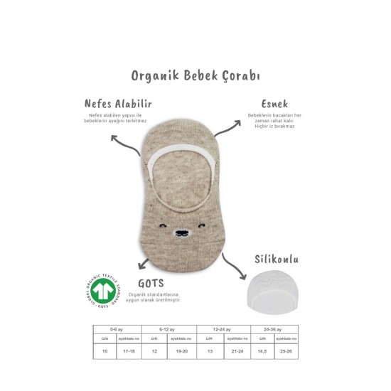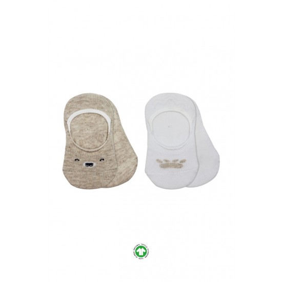 Bistyle 2'Li Babet Cute Face Penye Çorap BS30103 Bej Beyaz