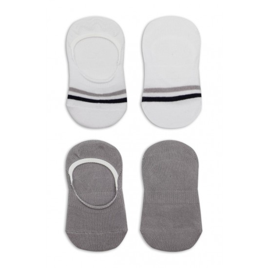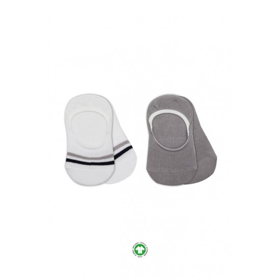 Bistyle 2'Li Penye Babet Silikon Çemberli Çorap 30102 Gri Beyaz