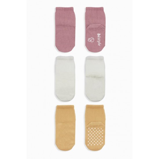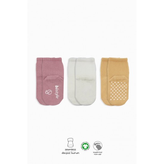 Bistyle Basic Kaymaz Penye Soket Çorap 3'Lü BS10106 Pudra Ekru Somon