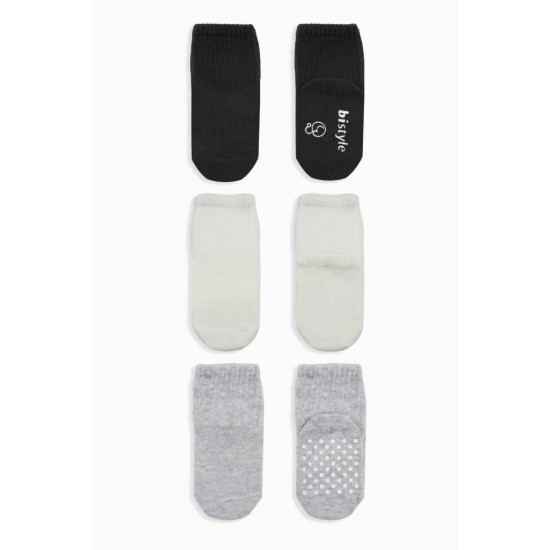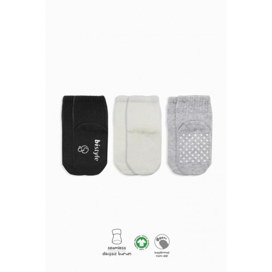 Bistyle Basic Kaymaz Penye Soket Çorap 3'Lü BS10107 Siyah Ekru Gri