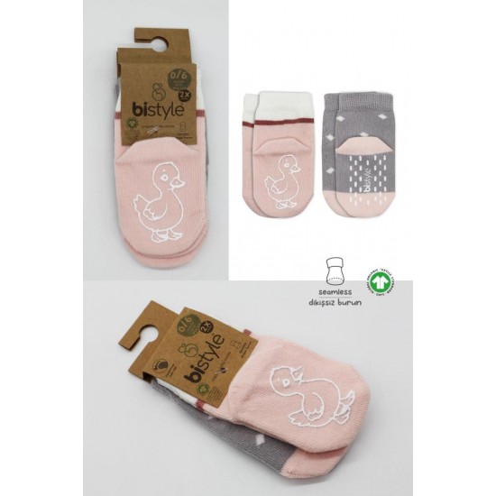 Paket İçeriği: Bistil Bistyle Organik Dikişsiz 2li Figürlü Kaymaz Penye Soket Bebek Çorap