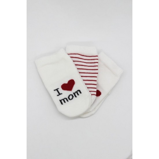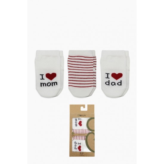 Bistil Bistyle Organik Kız Erkek Bebek Dikişsiz Basic 3lü Mom Dad Desen & Mama Papa Desen Soket Çorap Kokulu Pamuklu Yumuşak Antialerjik
