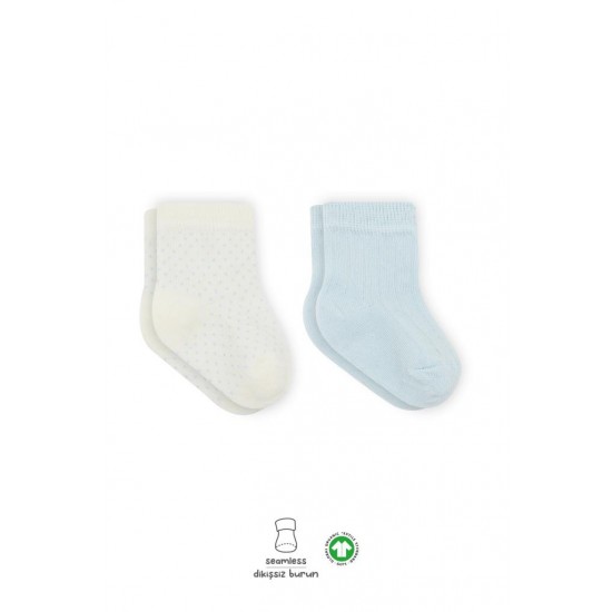 Bistyle Puan Derby Penye Soket Çorap 2'Li BS10103 Mavi Ekru