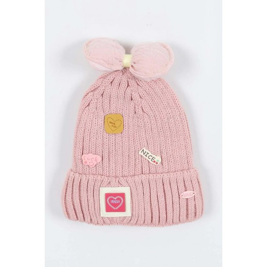 Kitti Çocuk Kız Kulaklı Bere (4-8 Yaş) K24130-02 Soft Pembe