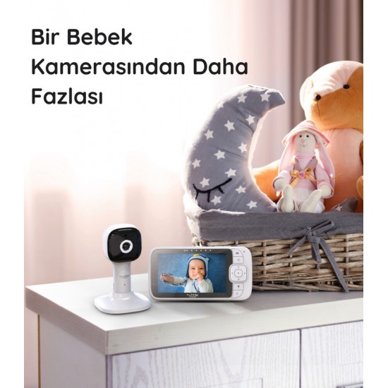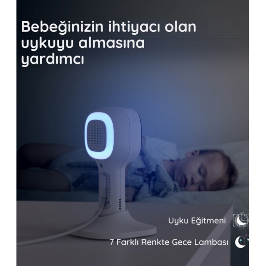 5” boyutundaki bebek monitörü size gece veya gündüz net bir görüntü sunar ve kamerada bulunan 7 farklı renkteki gece lambası ve Uyku Eğitmeni uygulamasıyla uykusuz geceler geçmişte kalır.