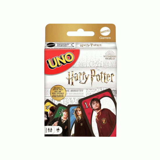 Bir UNO oyunu gecesi için Harry, Hermione, Ron, Profesör Dumbledore ve Hogwarts'tan en sevdiğiniz karakterlere katılın. Oyuncular, ellerindeki bir kartı destenin üstünde gösterilen mevcut kartla eşleştirerek tüm kartlarından kurtulmak için yarışırlar. Elinizdeki tüm kartlardan ilk kurtulan kişi olarak puan kazanın. Özel aksiyon kartları, her biri rakiplerinizi yenmenize yardımcı olacak bir işlevi yerine getirirken oyunun kurallarını değiştiren anlar sunar. Hatta özel bir Seçmen Şapka Kuralı Kartı bile var! Bu kartı oynadığınızda, seçtiğiniz başka bir oyuncu, bir Gryffindor kartı bulana kadar kart çekmeye devam etmelidir! Diğer aksiyon kartları arasında Atlamalar, Tersler, İkili Beraberlik ve Joker Kartlar bulunur. 500 kazanan ilk oyuncu veya takım ve ne zaman tekrar bir karta inin, 'UNO!' diye bağırmayı unutmayın.