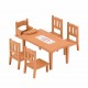 Yemek masası takımı, 1 adet yemek masası, 4 adet yetişkin sandalyesi ve 1 adet bebek sandalyesinden oluşmaktadır.