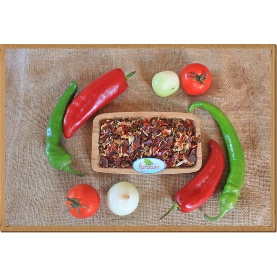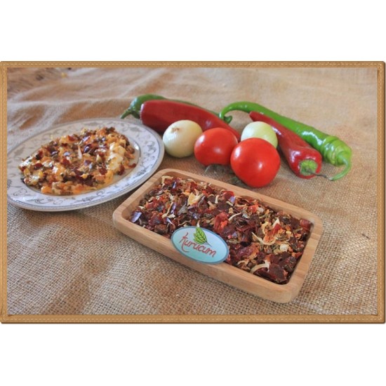 Kurutulmuş menemen karışımı kurutulmuş sebzelerin belirli oranlarda karıştırılarak menemen içine girebilecek ürünlerin bulunduğu bir karışımdır. 30 gram menemen karışımı yaklaşık 450 gram taze sebze kullanılarak üretilmektedir. Menemen karışımı içerisindeki ürünler;