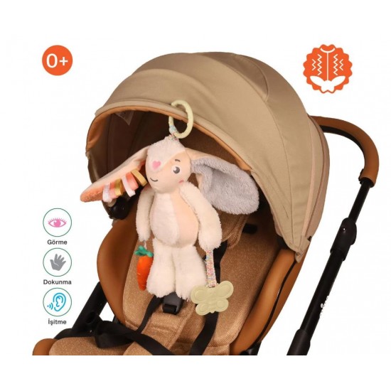 Üzerindeki kanca sayesinde bebek arabası, oto koltuğu, mama sandalyesi ve beşik gibi birçok yere kolayca asılır ve her an bebeğinize yol arkadaşı olur.