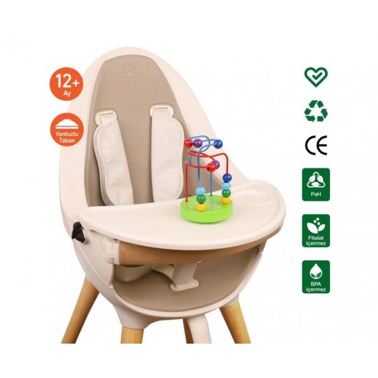 Mama sandalyesinde oturan bebeğin yemek yeme süresini daha eğlenceli hale getirir.