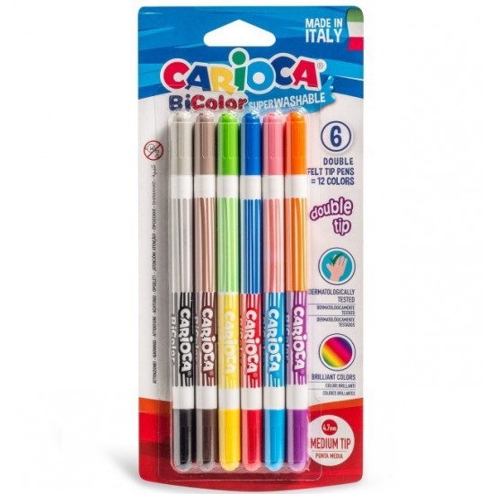 Carioca Bicolor Süper Yıkanabilir Çift Uçlu Keçeli Boya Kalemi 6'Lı 12 Renk