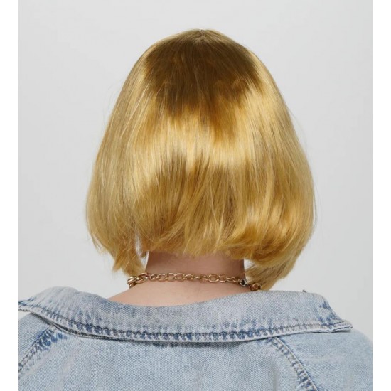 Altın Renk Düz Kesim Küt Parti Peruğu Kısa Takma Saç