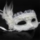 Beyaz Renk Yandan Tüylü İnci İşlemeli Taşlı Dantelli Parti Maskesi (17x12 cm)