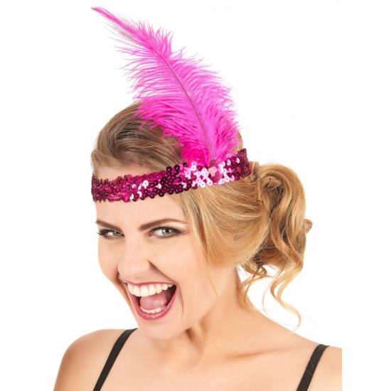 Fuşya Renk Tüylü Çarliston Saç Bandı