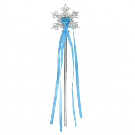 Kar Taneli Mavi Kalp Taşlı Saten Kurdeleli Karlar Ülkesi Elsa Asası Sopası 34 cm: Sihirli Bir Maceraya Hazır Olun!