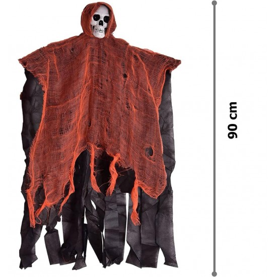 Led Işıklı Kahkaha Atan Sesli Sensörlü Ürpertici Kuru Kafa Korku Hayalet Saçaklı Dekor 90x50 cm