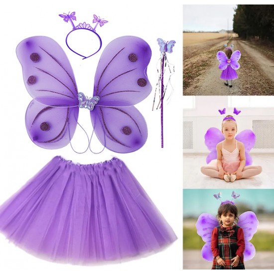 Lila Mor Kelebek Kostümü - Lila Mor Kelebek Kostüm Aksesuar Seti 4 Parça