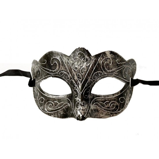 Antik gri gümüş renginin ve eskitilmiş görünümünün verdiği özgünlük ile Venedik maskeleri dünyasına adım atın. Bu özel maske, maskeli baloların ve temalı partilerin vazgeçilmez aksesuarı olacak.