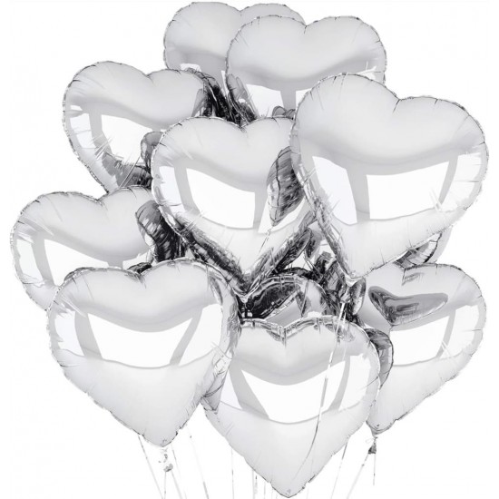 Metalize Parlak Gümüş Şekilli Kalp Uçan Balon Folyo 45 cm 10 Adet