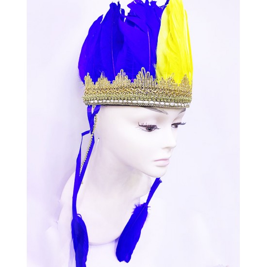Sarı Lacivert Renk Tüylü Kızılderili Başlığı | Fenerbahçe Taraftar Başlığı