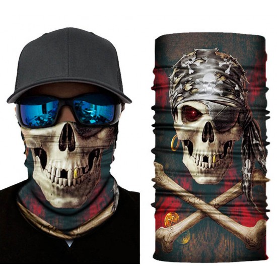 Siyah Renk Üzeri Likralı Korsan Kafatası Baskılı Baf Buff Bandana 30x48 cm