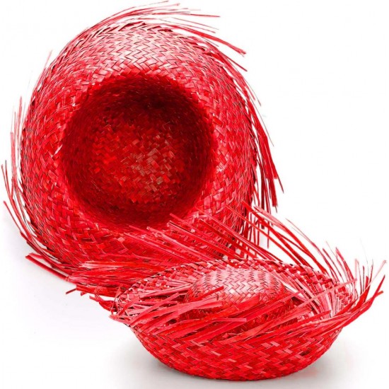 Tropikal Parti Kırmızı Hasır Hawaii Şapkası 13x36 cm