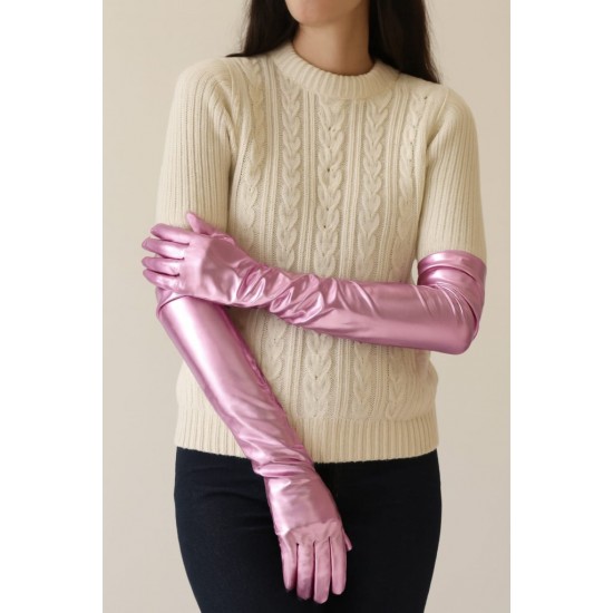 Uzun Boy Ekstra Parlak Saten Eldiven Pembe Renk
