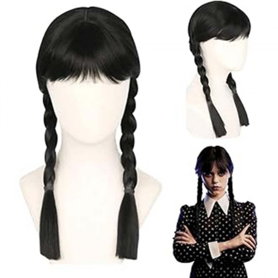 Wednesday Addams Siyah Örgülü Peruk