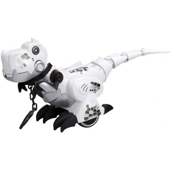 Akıllı robot oyuncak T-rex'in seni takip etmesini istiyorsan kumanda üzerindeki eylem düğmesine basılı tutman yeterli.