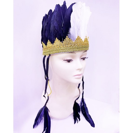 Siyah Beyaz Renk Tüylü Kızılderili Başlığı | Taraftar Başlığı