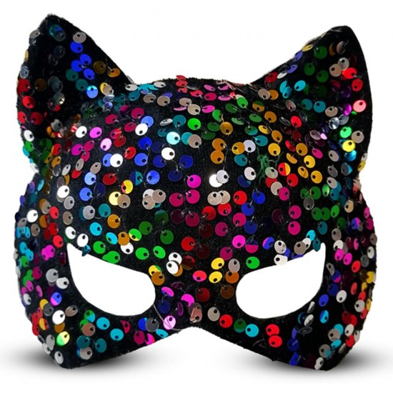 Ürün Adı: Siyah Kadife Kumaş Üzerine Rengarenk Payetli Pullu Parti Maskesi