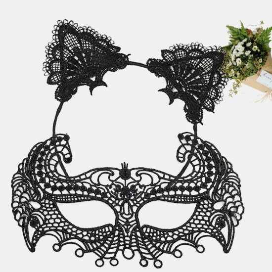 Siyah Renk Dantel Maske ve Dantel Kulak Taç Seti Yetişkin No 4